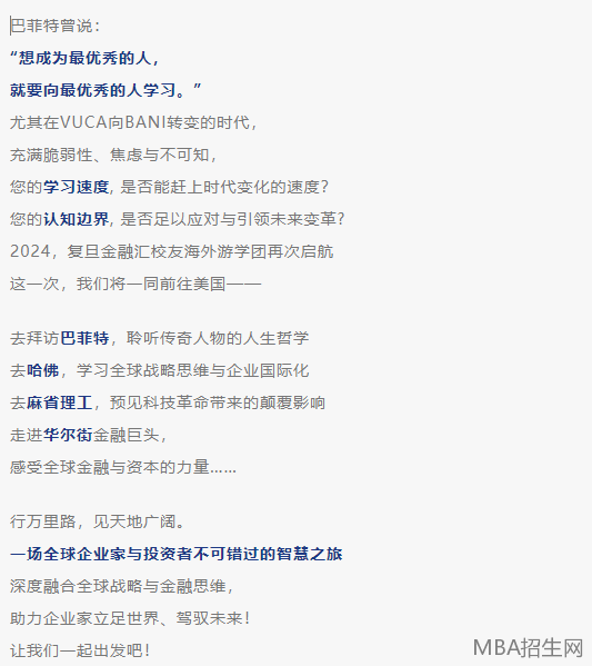 游學團以復旦并購班歷屆校友為主要成員,與諸多上市公司、行業龍頭企業校友一起出發。行程中結合課堂授課、深度參訪、復盤交流、高端峰會、體育運動、行走中的歷史人文課、藝術鑒賞等多種形式,商業認知與人文素養并行,拓展視野、深化友誼,助力每一位校友學有所獲,行有所得。Part 3 / 學術支持: 哈佛 & 麻省理工